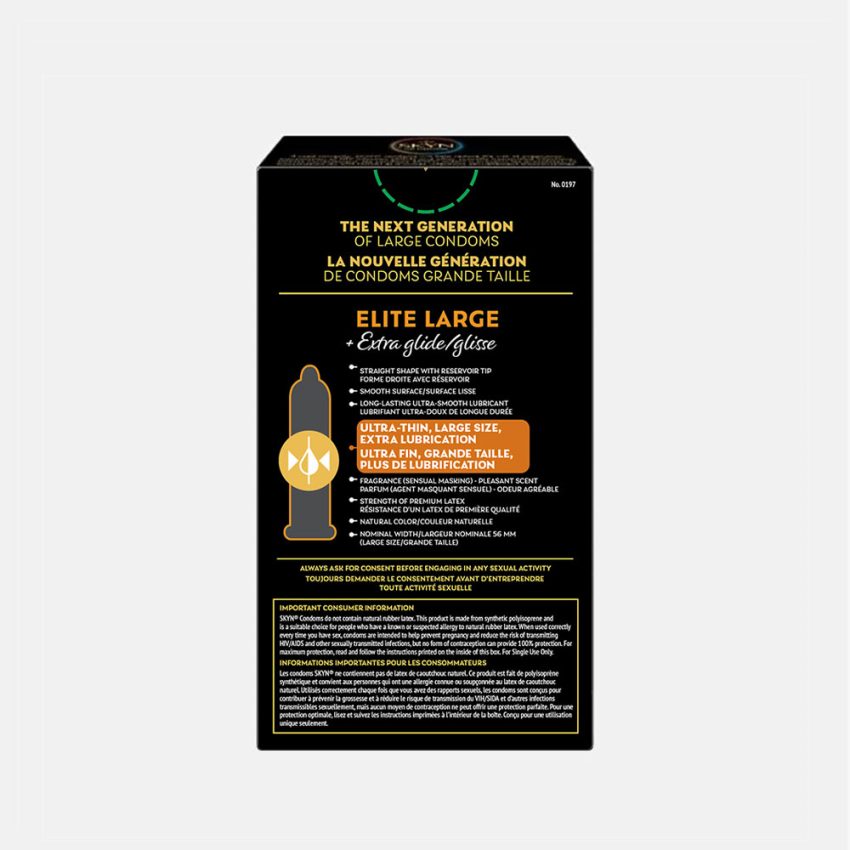 u003cp class=u0022p1u0022u003eSKYN® Elite Large Ultra-Thin Premium Polyisoprene Lubricated Condoms are made with SKYNFEEL® material, a non-latex material that feels soft and natural. 15% thinner than our SKYN® Original condoms, and longer and wider for more comfort, these condoms provide ultimate sensitivity. They are also ultra-soft and easily stretch to your shape so that they are comfortable to use. All SKYN® condoms are free from natural rubber proteins, making them a suitable choice for people with known or suspected latex allergy.u003c/pu003e
