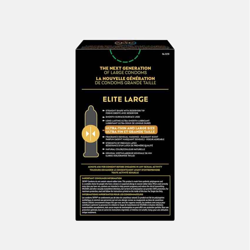 SKYN® Elite Large Ultra-Thin Premium Polyisoprene Lubricated Condoms are made with SKYNFEEL® material, a non-latex material that feels soft and natural. 15% thinner than our SKYN® Original condoms, and longer and wider for more comfort, these condoms provide ultimate sensitivity. They are also ultra-soft and easily stretch to your shape so that they are comfortable to use. All SKYN® condoms are free from natural rubber proteins, making them a suitable choice for people with known or suspected latex allergy.