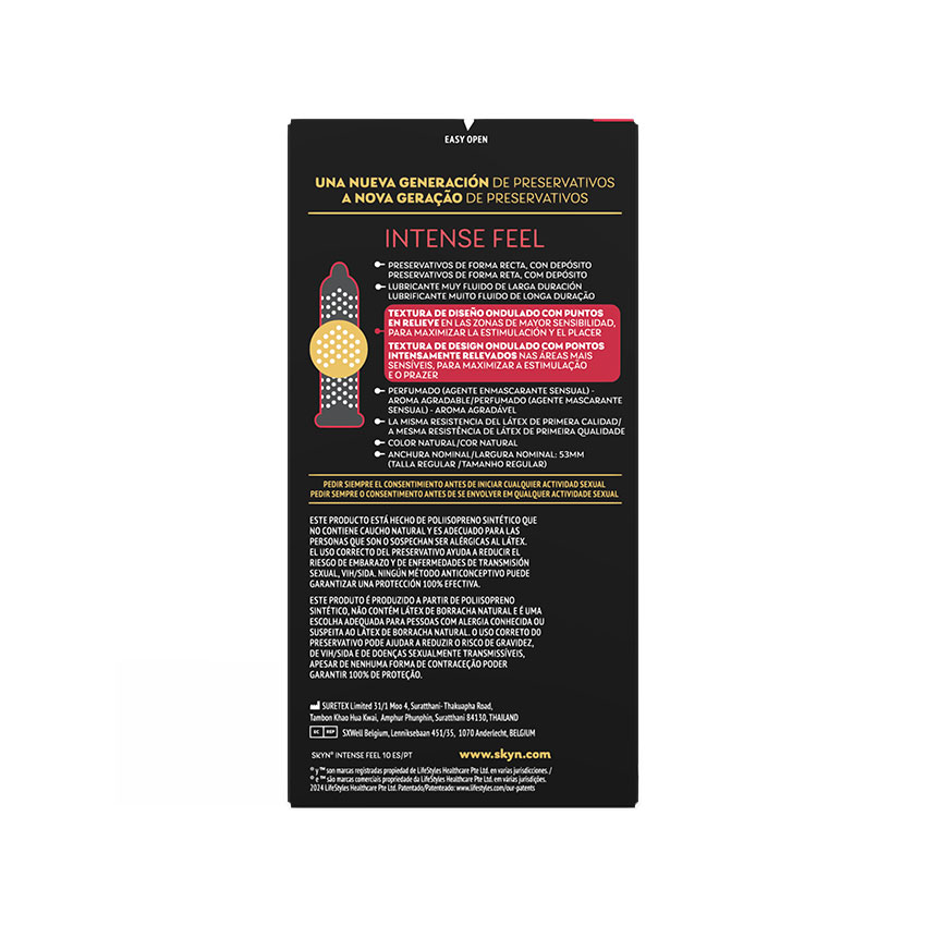 Los condones SKYN Intense Feel cuentan con un diseño ondulado y puntos en relieve para aumentar las sensaciones y el placer.