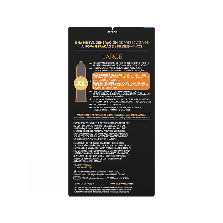 Con una anchura nominal de 56 mm, los SKYN Large son, como habrás adivinado, más grandes y más largos que nuestros condones estándar, para mayor comodidad.