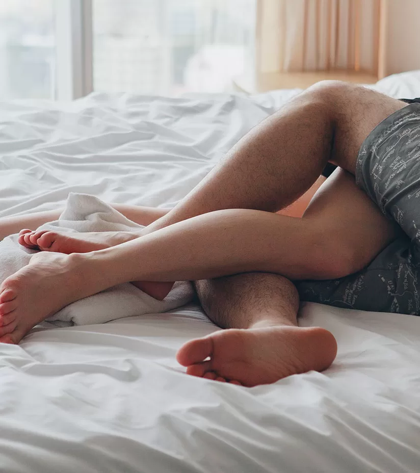 Feet of a woman lying on a bed