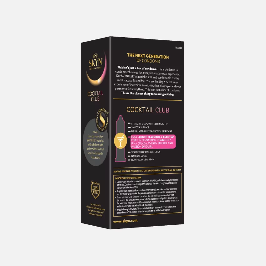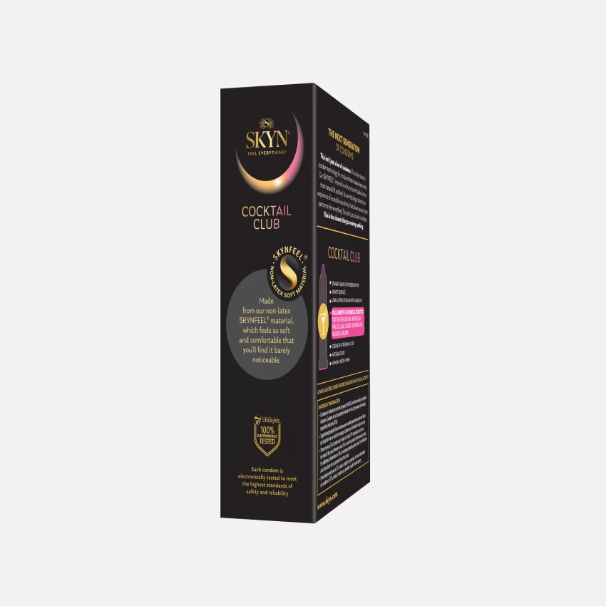 SKYN Cocktail Club includes condoms flavoured along the full shaft. Each flavour is inspired by a famous cocktail.