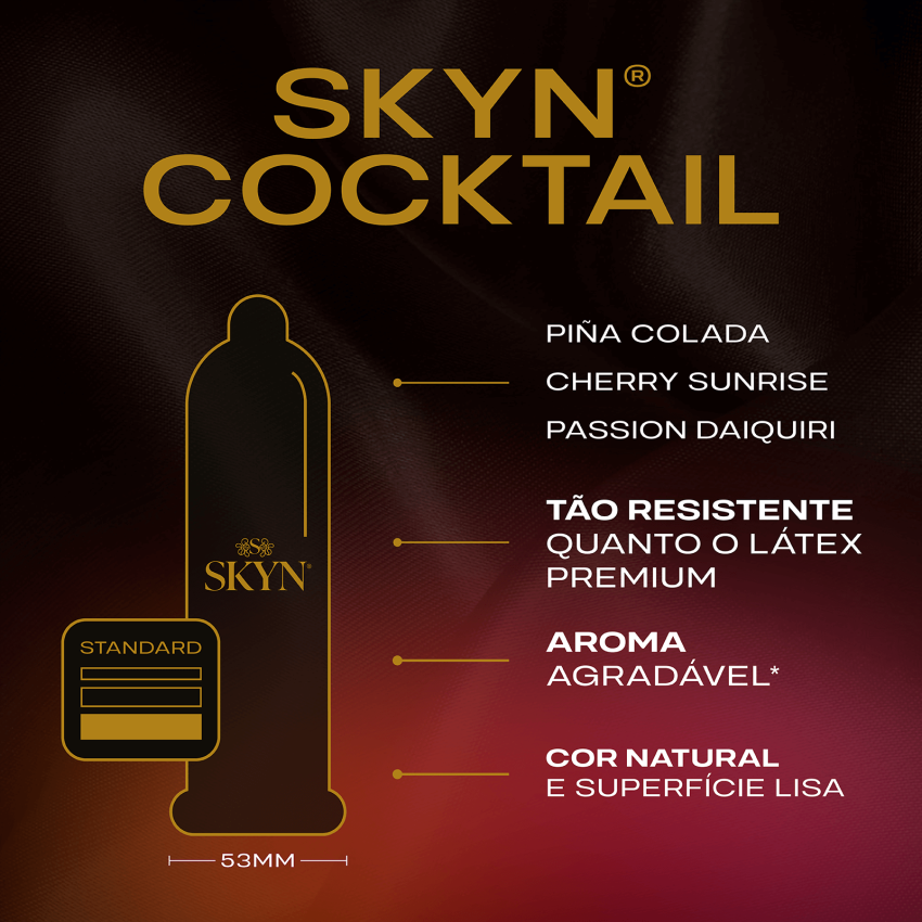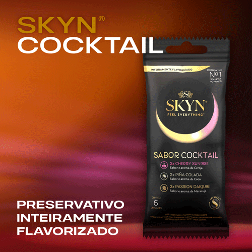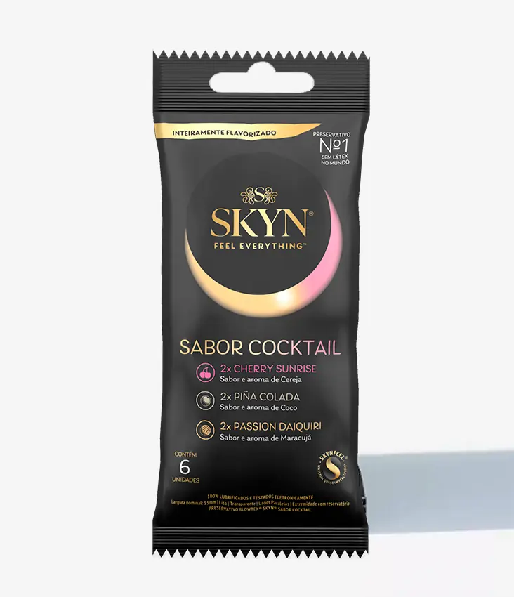 SKYN® Cocktail foi inspirado nos melhores coquetéis e são saborizados ao longo de toda a extensão do preservativo.