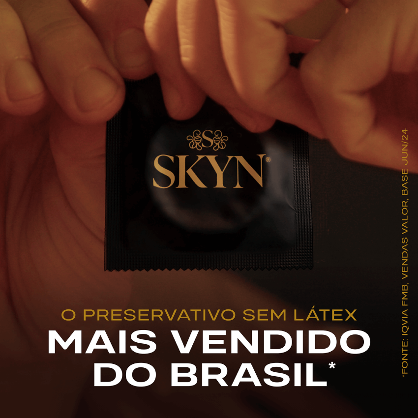 Os preservativos SKYN são produzidos com SKYNFEEL®, um material de poliisopreno tecnologicamente avançado que é completamente livre de látex de borracha natural.