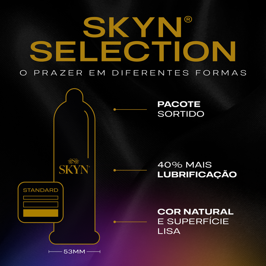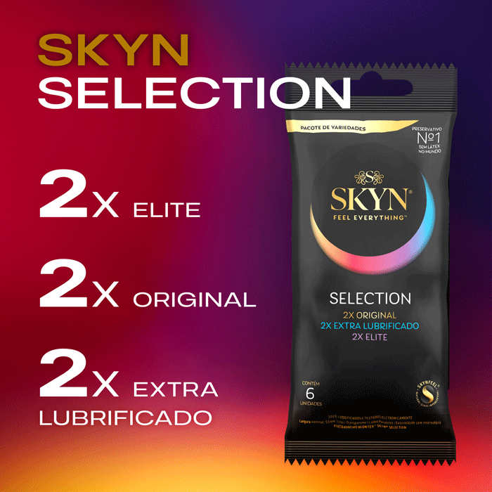 SKYN® Selection é a seleção de 3 preservativos no mesmo pacote: SKYN® Elite, SKYN® Original e SKYN® Extra Lubrificado.